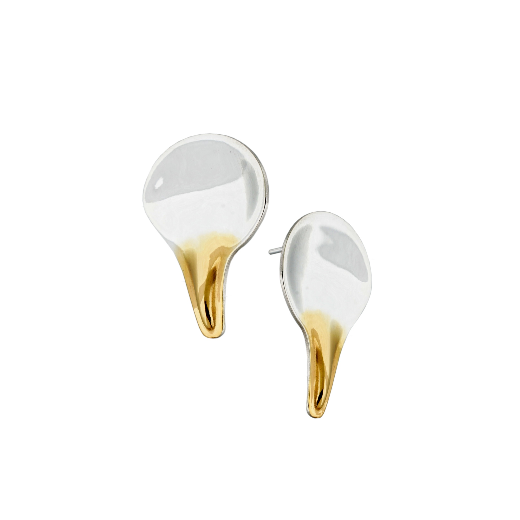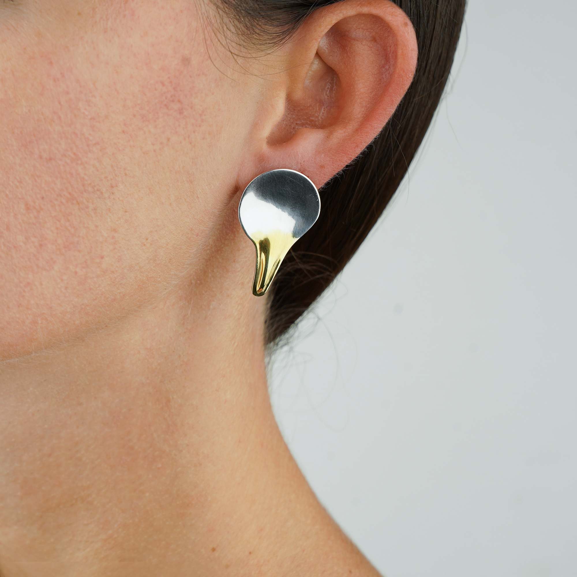 Realizzati in argento 925 e arricchiti da una doratura in oro giallo 24K, gli orecchini Oblio sono indossabili grazie ad una chiusura a perno. La lamina sbalzata tirata a lucido riporta alla funzione degli specchi deformanti, concretizzando così il concetto filosofico e antropologico dell’eterno divenire dell’essere umano. E la nostra impossibilità di coincidere esattamente con ciò che eravamo.