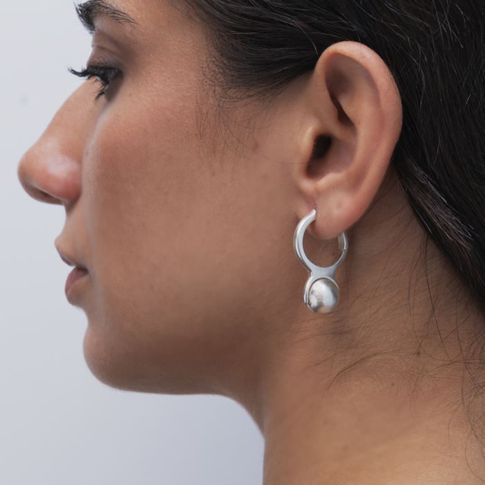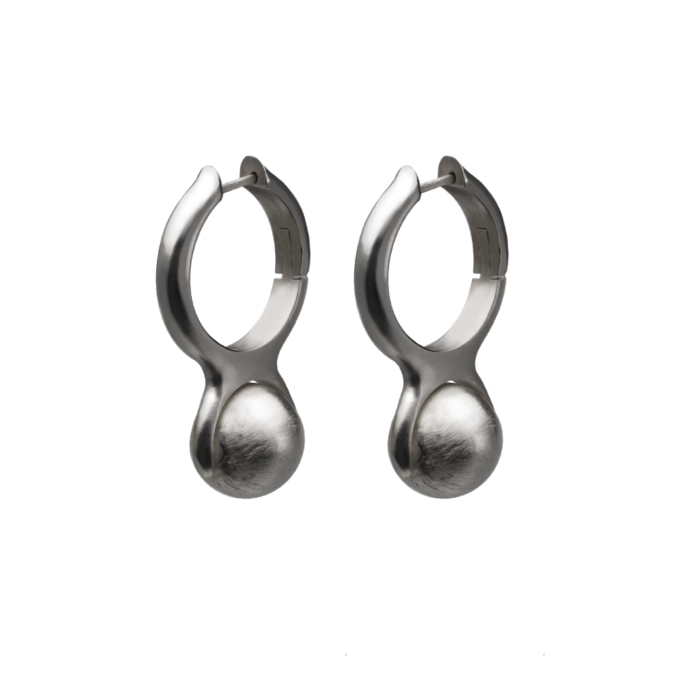 Realizzati con grande cura e alta artigianalità Dìuma, sono composti da una sfera in grado di ruotare su se stessa con una finitura effetto seta, montata su un orecchino satinato a cerchio con chiusura a scatto.